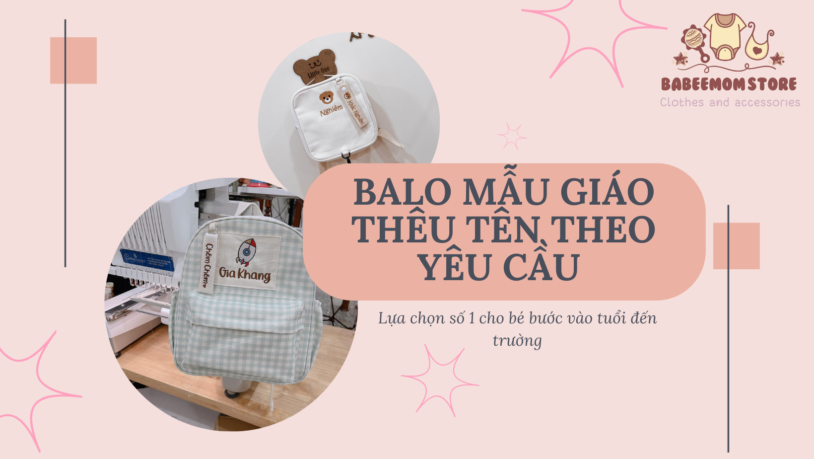 Balo mẫu giáo thêu tên theo yêu cầu là lựa chọn hoàn hảo cho các bé sắp bước vào môi trường mầm non. Sản phẩm không chỉ mang tính tiện lợi mà còn thể hiện sự quan tâm tinh tế của ba mẹ dành cho con. Việc cá nhân hóa bằng tên giúp bé tự tin hơn, dễ nhận diện và giữ gìn đồ đạc tốt hơn. Nếu ba mẹ đang tìm một chiếc balo vừa đẹp – bền – nhẹ – độc đáo, thì balo thêu tên chắc chắn là món quà tuyệt vời mà bé sẽ rất yêu thích. Hãy ghé ngay gian hàng của Babeemom tham khảo thêm nhé !