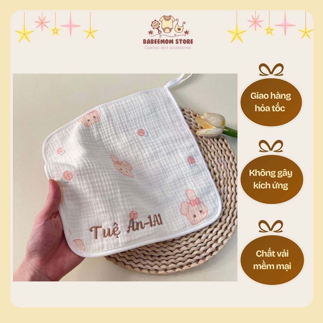 - Nhận Diện Dễ Dàng: Với tên thêu nổi bật, khăn yếm của bé sẽ không bao giờ bị lẫn lộn ở trường học, lớp mẫu giáo, giúp cô giáo và mẹ dễ dàng phân biệt.